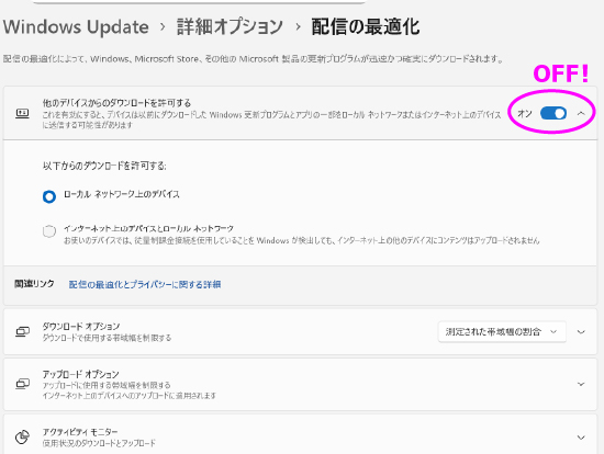 「配信の最適化」を無効にする