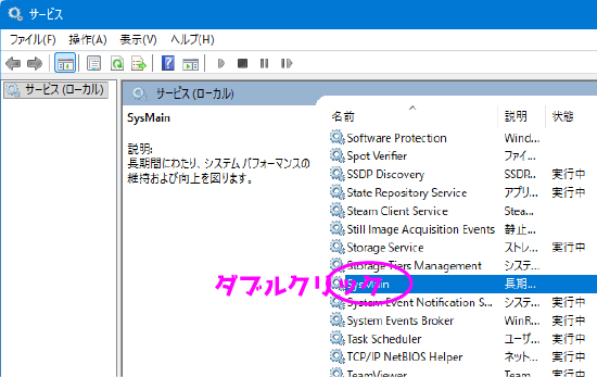 「SysMain」を無効にする